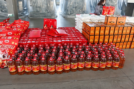 當那琳瑯滿目的福利整齊地擺放在眼前時,大家的臉上都露出了燦爛的笑容。首先映入眼簾的是一袋袋飽滿的大米和白面,它們象征著生活的富足與安穩。大米,潔白如玉,煮出的米飯香氣四溢,每一粒都承載著對美好生活的期許;白面,如雪般細膩,能變幻出各種美味的面食,寓意著新的一年里生活豐富多彩。這些主食不僅實用,更是公司對員工生活的細致關懷。